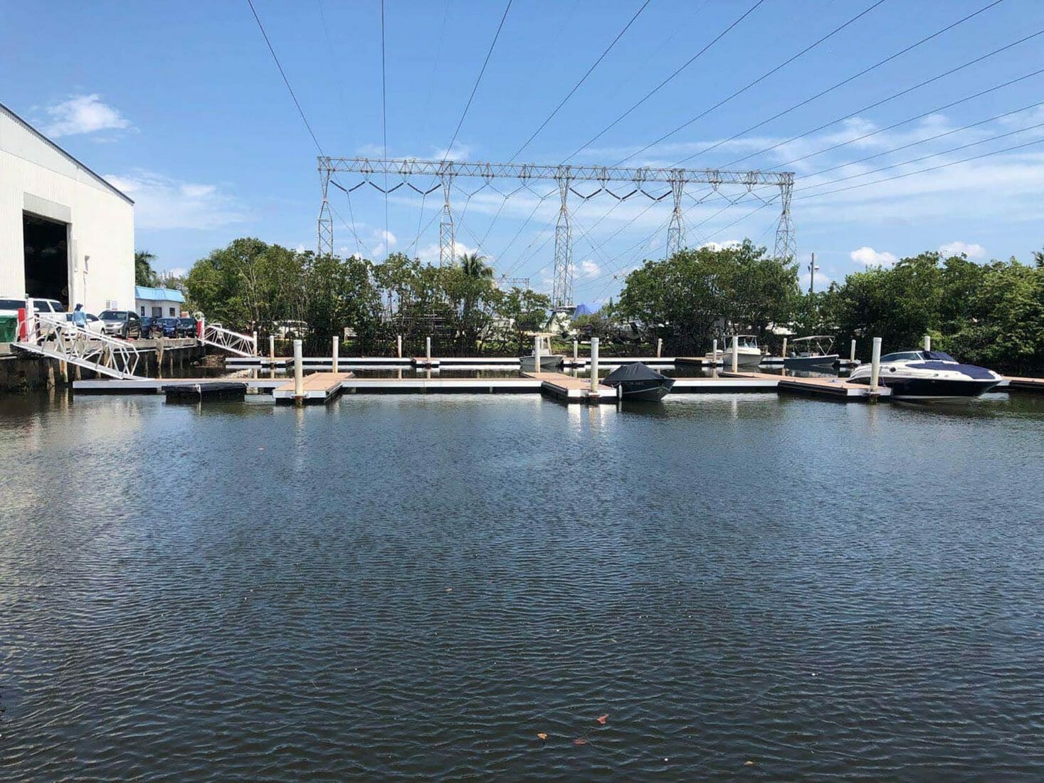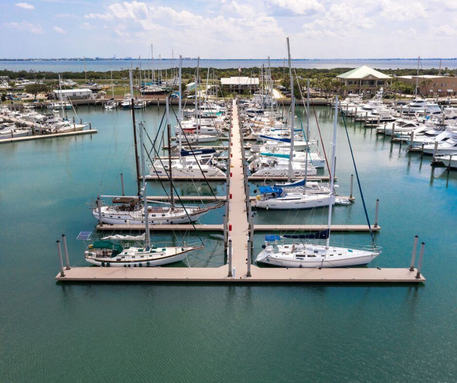 Corrosion resistance is one of many reasons why Gasparilla Marina – located just off the Gulf of Mexico on the Gasparilla Sound in Placida, Florida – chose to have AccuDock install 7’ x 50’ aluminum floating docks with pentagon frames on the marina’s waterfront.