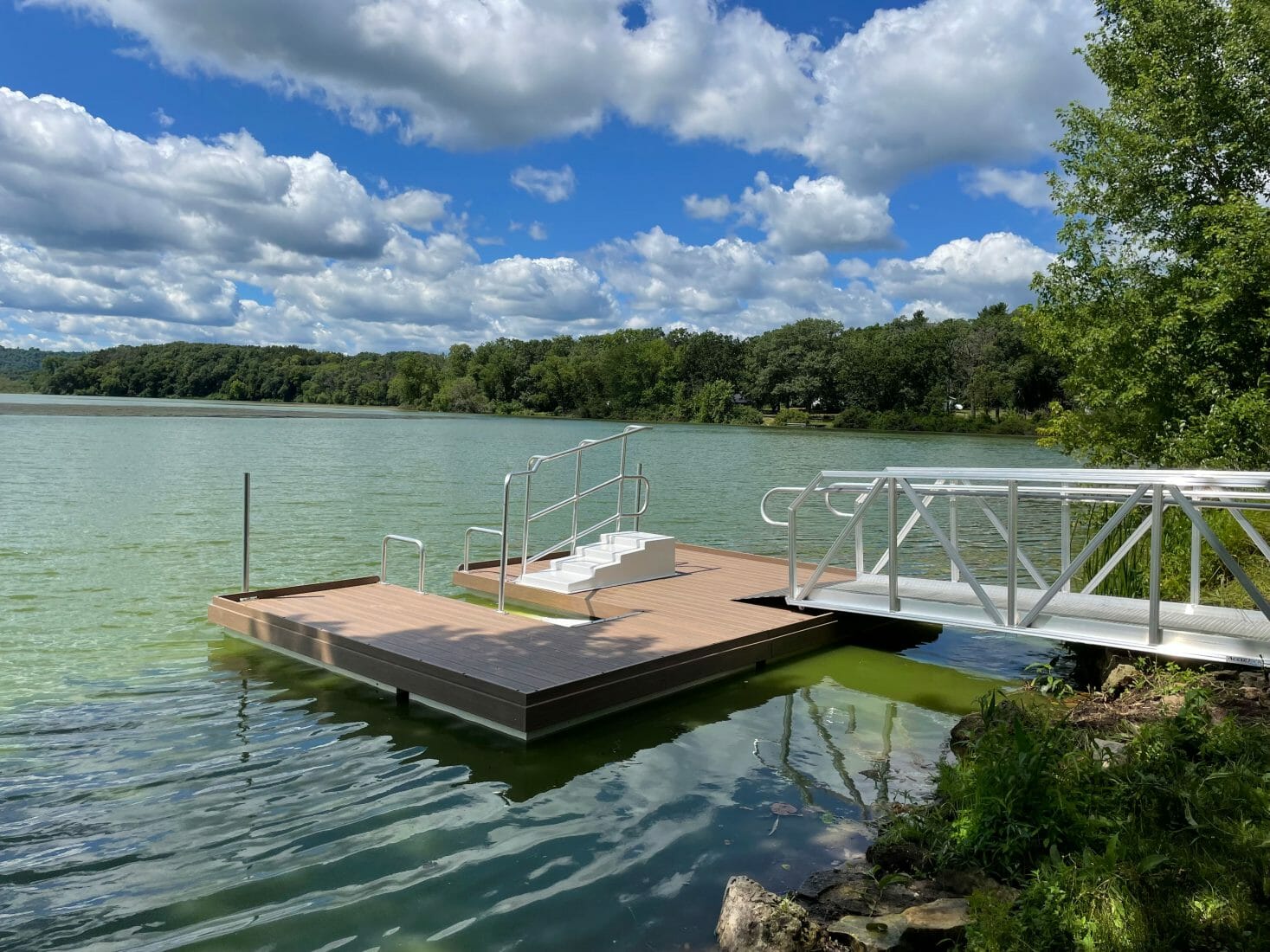 Unique only to AccuDock® is the ADA Compliant Transfer Platform for ADA Kayak and Canoe launch docks. The design and placement of the ADA Transfer Platform provides safe, easy, stable access to and from the water. The ADA accessible floating launch dock and ADA Gangway allows paddlers of all ages and abilities to access the water safely.