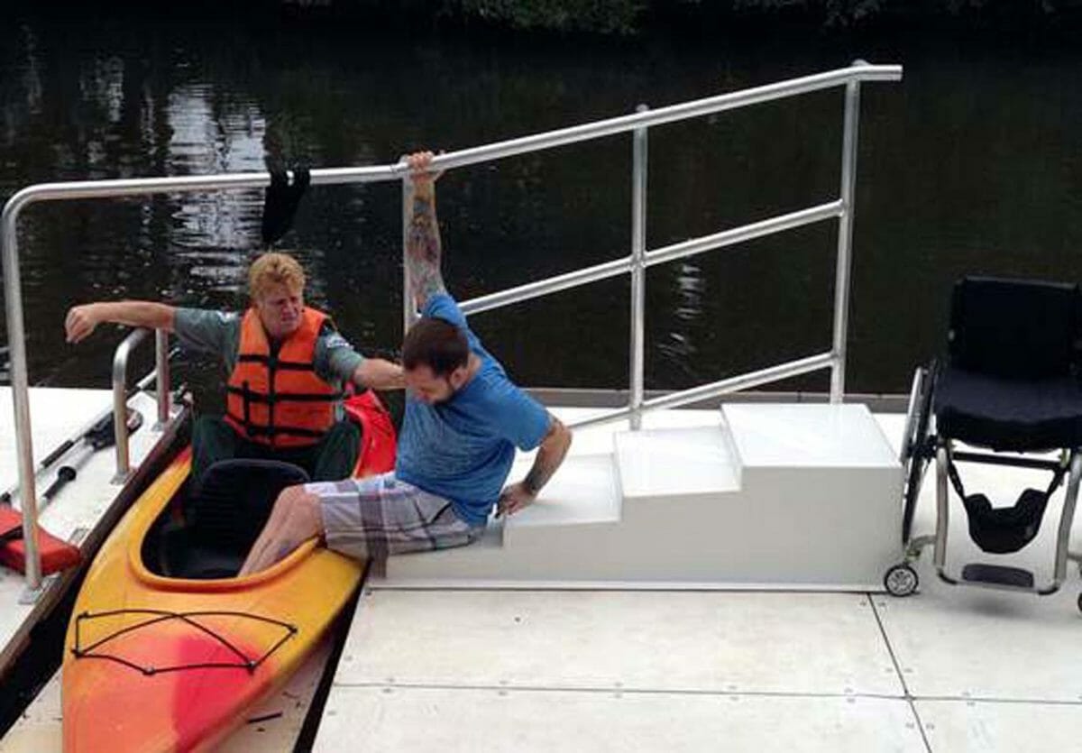 AccuDock Floating Kayak and Paddlesport ADA Compliant launch docks allow safe and easy access in and out of the water. The AccuDock® wheelchair ADA Compliant transfer platform, Kayak and Canoe assist bars, and Safe-Launch Kayak/Canoe platform has proven to be a great asset to those who require ADA Compliant Dock applications. Having the freedom to launch kayaks and canoes safely with little or no assistance of others. AccuDock® offers ADA Specification Packages for Government Agencies interested in Solicitations and Procurement of ADA Kayak Launch and ADA Gangway Ramp projects. AccuDock® ADA Accessible Gangway requirements meet the specifications for accessible routes, and Chapter 10: recreation facilities as to the length, slant ratio, railing size, height, scope, edge protection and continuous handrail extension and transition plates.