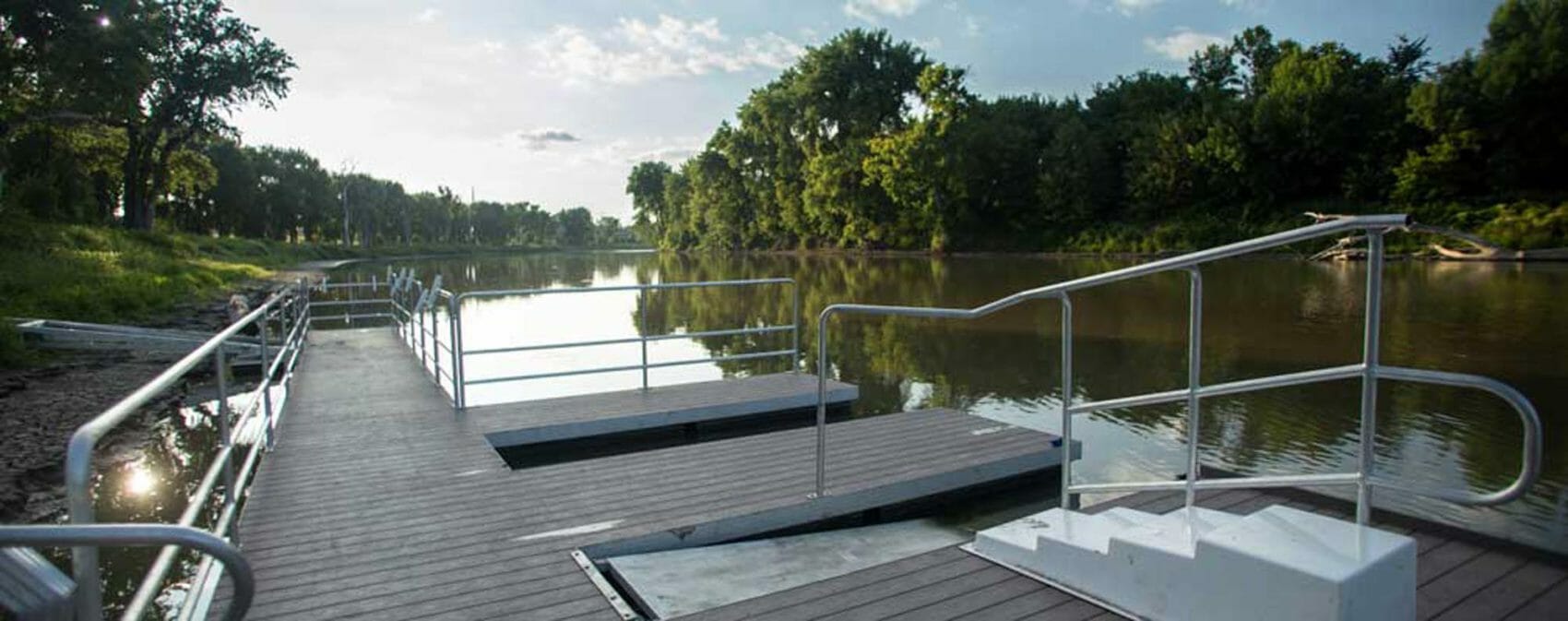 AccuDock has facilitated multiple government agency projects for National Park locations, DOI, FWS and various public marinas using the ADA Compliant Kayak and Canoe Launch docks. The standard sizes available are 12’ x 18’ with transfer platform and 3’ x 8’ safe launch, 16’ x 18’ with transfer platform and a 3’ x 12’ safe launch and a 16’ x 26’ with transfer platform and a 3’ x 12’ safe launch. ADA accessible Canoe Launch docks require a 4’ x 12’ canoe slip with an overhead assist bar. ADA floating docks can be customized for any location. There is no maximum space requirement.